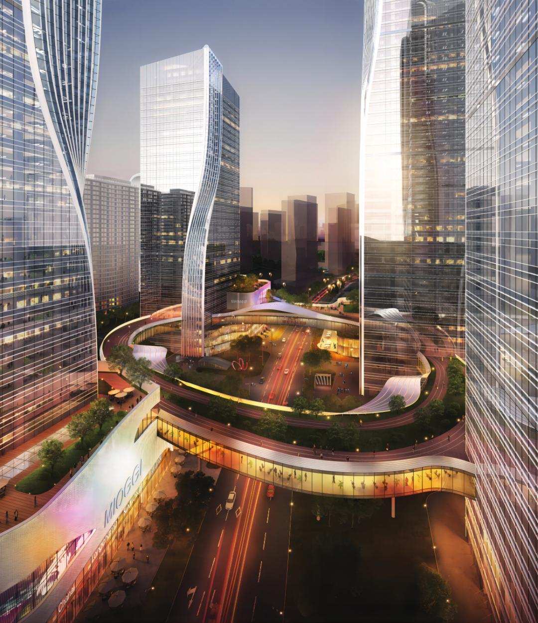 මෙම ද්විත්ව කුළුණු සංකීර්ණය අක්කර 57 ක් වර්ග මීටර් 220,000 ක භූමි ප්රමාණයකින්, හෝටල්, සිල්ලර, කෑම සහ විනෝදාස්වාදය හා විනෝදාස්වාදය ඇති මුළු බිම් ප්රමාණයකින් ආවරණය කරයි. එහි වීදුරු තිරය, සමමුහුර්ත සැහැල්ලු තීරුවල මීටර් 7,,200 කට අධික ප්රමාණයක් සමඟ සරසා ඇති, වර්ග මීටර් 11,000 කට ආසන්න ප්රමාණයක් පුරා, ප්රබල දෘශ්ය බලපෑමක් ලබා දෙමින්, වර්ග මීටර් 11,000 කට ආසන්න ප්රමාණයක් නිර්මාණය කරයි.