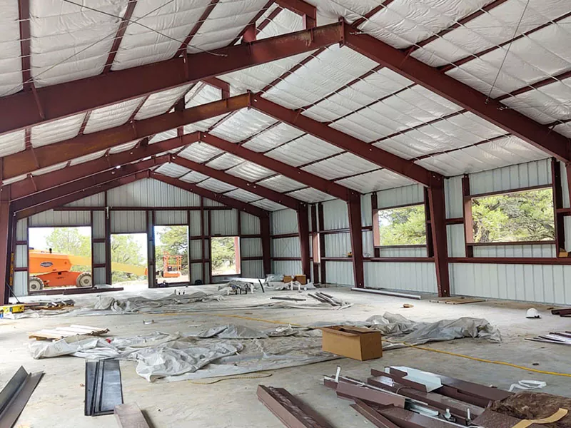 සෙවිලි සහ බාහිර ආවරණ:වානේ රාමුව සම්පූර්ණ වූ පසු, සාමාන්යයෙන් පරිවරණය කළ ලෝහ පැනල් හෝ තනි ප්ලයි පටල ද්රව්ය වලින් සමන්විත සෙවිලි පද්ධතිය ස්ථාපනය කර ඇත. බාහිර බිත්ති, මෝස්තරයට ඇතුළත් කර ඇත්නම්, ලෝහ පැනල් හෝ ගඩොල් වැනි ද්රව්ය භාවිතා කර සවි කර ඇත.