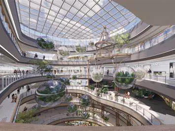 ජපන් ෆුකයා උද්යාන වෙළඳසැල් සාප්පු මධ්යස්ථානය: අර්ධ-මහල් දෙකකින් යුත් වානේ ව්යුහයක් සහිත වානේ ව්යුහයක්, ගොඩනැගිල්ලේ බාහිර බිත්ති ඔරිගාමි මෙන් ප්රසන්න පෙනුමක් ඇති අතර එය සාප්පු මධ්යස්ථානයේ සුවිශේෂී ලක්ෂණයක් ඇත. එහි ආහාර අධිකරණය දෙවන මහලේ පිහිටා ඇති අතර සාප්පු මධ්යස්ථානය සහ දුර කඳුකරය පිළිබඳ ද්විත්ව දැක්මක් ලබා දෙයි.