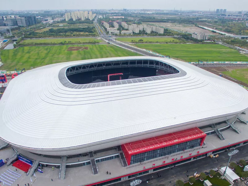 වානේ ව්යුහයේ ප්රධාන ද්රව්ය වන්නේ වානේ තීරු, වානේ බාල්ක සහ ත්රිභාෂයන් ඇතුළු ඉහළ ශක්තියක් වන වානේ, වානේ බාල්ක සහ ත්රිභාෂයන් ය. මෙම වානේ විශාල යාන්ත්රික ගුණ, විශාල බර පැටවීමට හැකියාව ඇති නමුත් සුපිරි විශාල පරිමිතියක් ලබා ගැනීම සඳහා ක්රීඩාංගණයට හැකි වන අතර, තීරු-බාධාවකින් තොරව විවෘත ඉඩක් නිර්මාණය කිරීම සහ ප්රේක්ෂකයින් සඳහා වඩා හොඳ නැරඹීමේ අත්දැකීමක් ලබා දීම.